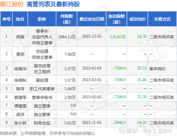 振江股份的高管列表及最新持股情况如下: