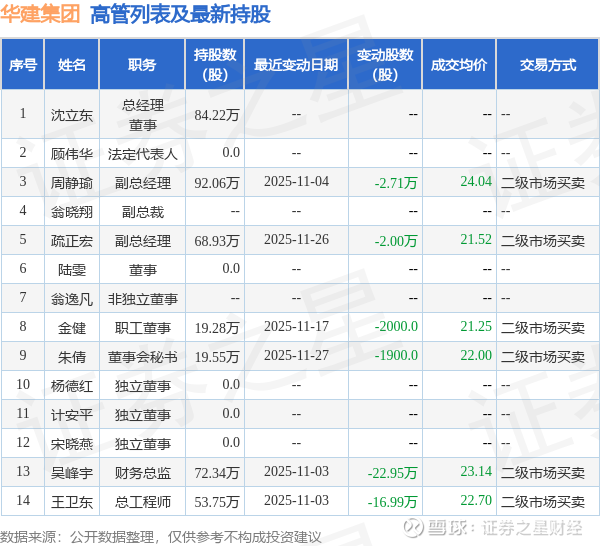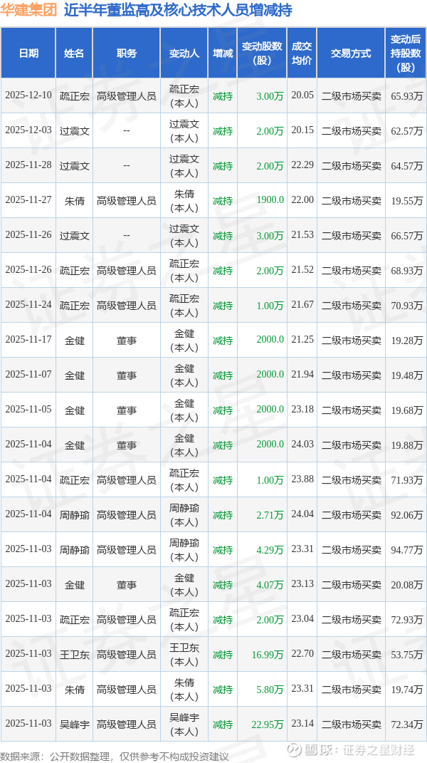 华建集团近半年内的董监高及核心技术人员增减持详情如下: