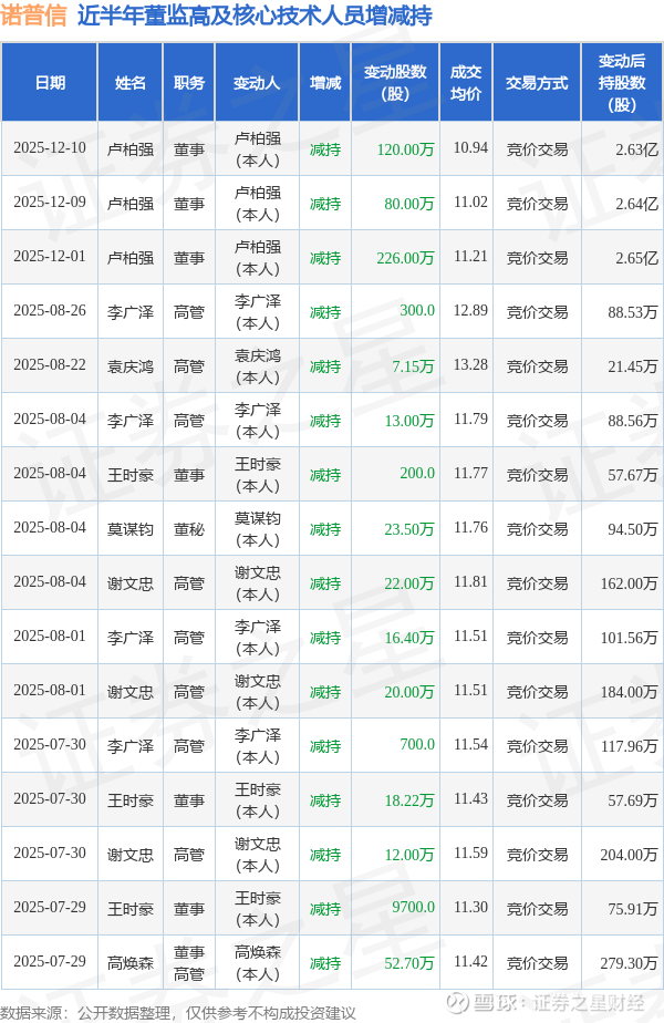 诺普信近半年内的董监高及核心技术人员增减持详情如下: