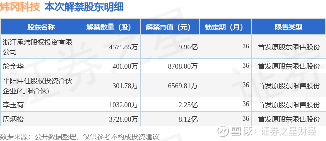 证券之星消息,根据市场公开信息整理,炜冈科技(001256)于12月12日将有1.0亿股限售股份解禁,为公司首发原股东限售股份,占公司总股本70.38%。(本次数据根据历史公告整理得出,实际情况以上市公司最新公告为准)本次解禁后,公司还有129.34万股限售股份,占总股本0.91%。具体如下图所示: