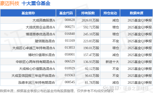 根据2025基金Q3季报公募基金重仓股数据,重仓该股的公募基金共43家,其中持有数量最多的公募基金为大成基金的大成高鑫股票A。大成高鑫股票A目前规模为114.53亿元,最新净值