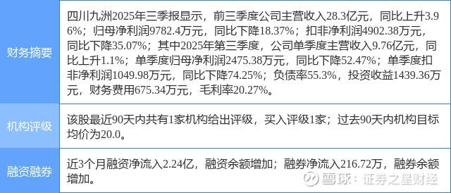 四川九洲涨9.98%,中航证券二个月前给出“买入”评级,目标价20.00元