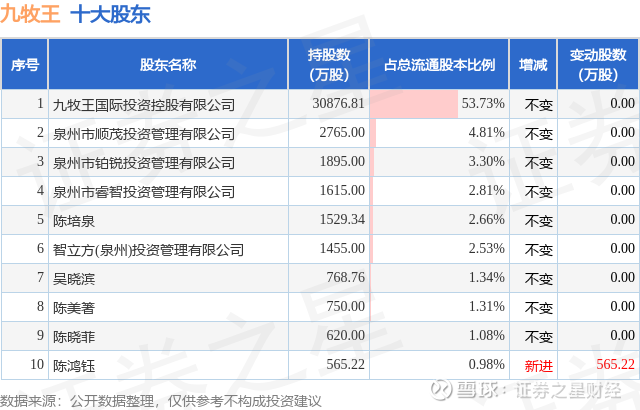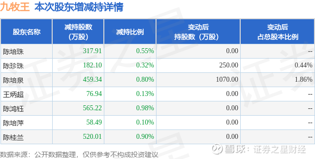 证券之星消息,12月12日九牧王发布公告《九牧王:九牧王关于持股5%以上的股东权益变动触及1%刻度的提示性公告(三)》,其股东陈培珠、陈珍珠、陈培泉、王炳超、陈鸿钰、陈培萍、陈桂兰于2025年12月11日至2025年12月12日间合计减持2180.01万股,占公司目前总股本的3.7937%,变动期间该股股价上涨4.3%,截止12月12日收盘报15.03元。