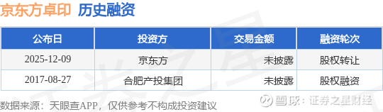 证券之星消息,根据天眼查APP于12月9日公布的信息整理,合肥京东方卓印科技有限公司股权转让融资,交易额未披露。