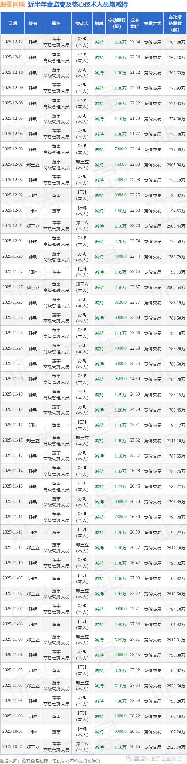 殷图网联近半年内的董监高及核心技术人员增减持详情如下: