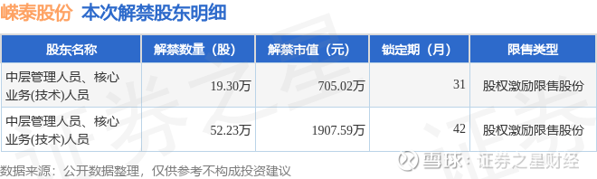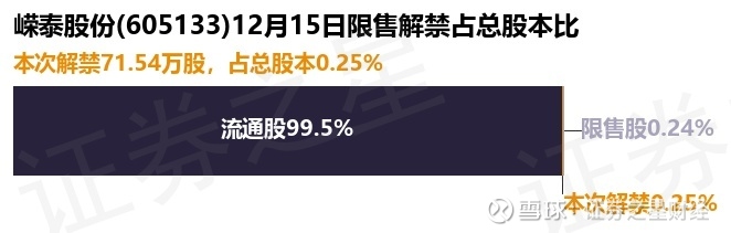 证券之星消息,根据市场公开信息整理,嵘泰股份(605133)于12月15日将有71.54万股限售股份解禁,为公司股权激励限售股份,占公司总股本0.25%。(本次数据根据历史公告整理得出,实际情况以上市公司最新公告为准)最近一年内,该股累计解禁4188.15万股,占总股本的14.81%。本次解禁后,公司还有68.85万股限售股份,占总股本0.24%。具体如下图所示: