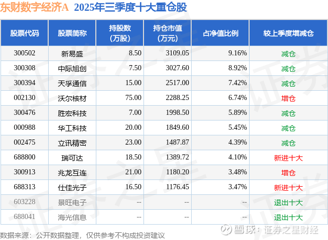 东财数字经济A的前十大重仓股如下: