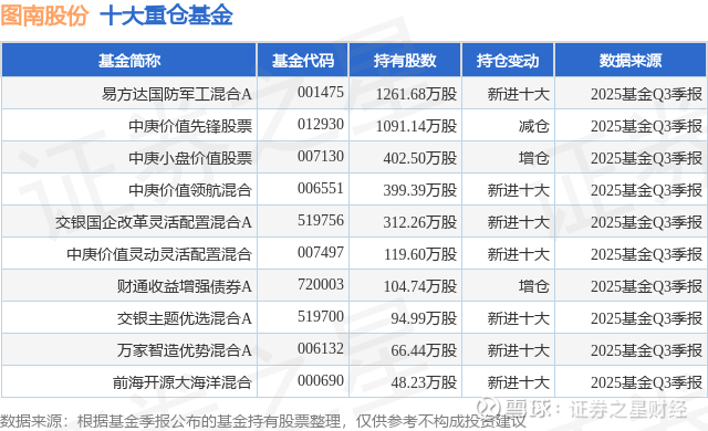 重仓图南股份的前十大公募基金请见下表: