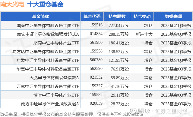 根据2025基金Q3季报公募基金重仓股数据,重仓该股的公募基金共19家,其中持有数量最多的公募基金为国泰基金的国泰中证半导体材料设备主题ETF。国