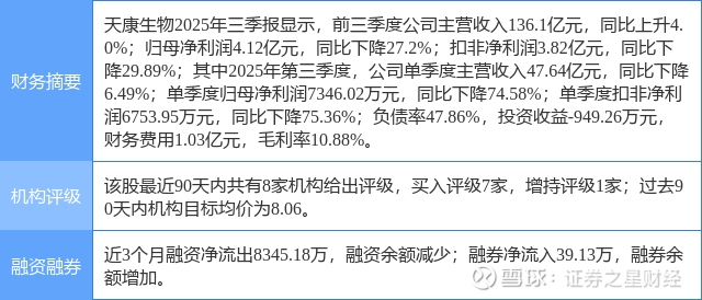 2025年10月31日,开源证券研究员陈雪丽,王高展发布了对天康生物的研报《公司信息更新报告:饲料业务量利齐增,生猪养殖降本增效并购扩张》,该研报对天康生物给出“买入”评级。研报中预计公司2025-2027年归母净利润分别为4.17/7.02/9.66(2025-2027年原预测分别为6.77/9.13/15.76)亿元,对应EPS分别为0.31/0.51/0.71元,当前股价对应PE为24.2/14.4/10.5倍。公司饲料业务量利齐增经营向好,生猪养殖持续推进降本增效,蛋白油脂等业务盈利持续修复,维持“买入”评级。证券之星数据中心根据近三年发布的研报数据计算,该研报作者对此股的盈利预测准确度为32.69%。