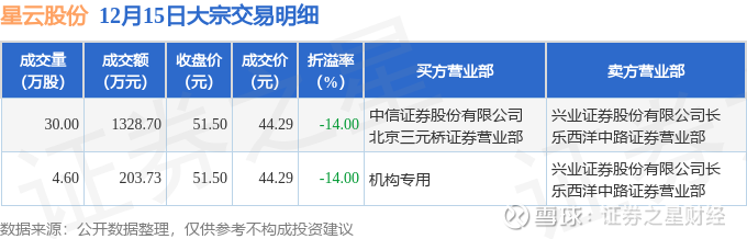 证券之星消息,12月15日星云股份发生大宗交易,交易数据如下: