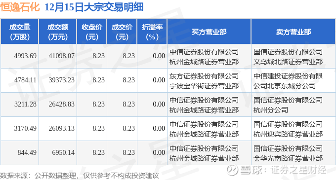 证券之星消息,12月15日恒逸石化发生大宗交易,交易数据如下: