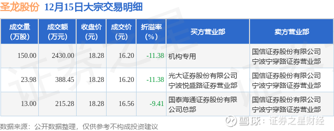 证券之星消息,12月15日圣龙股份发生大宗交易,交易数据如下:
