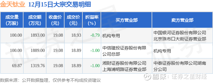 证券之星消息,12月15日金天钛业发生大宗交易,交易数据如下: