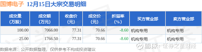 证券之星消息,12月15日国博电子发生大宗交易,交易数据如下: