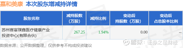 证券之星消息,12月15日嘉和美康发布公告《嘉和美康:嘉和美康股东减持股份结果公告》,其股东苏州赛富璞鑫医疗健康产业投资中心(有限合伙)于2025年9月16日至2025年12月12日间合计减持267.25万股,占公司目前总股本的1.9424%,变动期间该股股价下跌28.75%,截止12月12日收盘报21.46元。