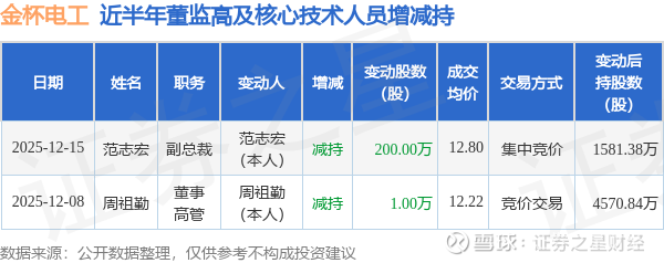 金杯电工近半年内的董监高及核心技术人员增减持详情如下: