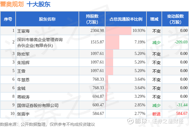 根据蕾奥规划2025年三季报公布的十大股东详情如下: