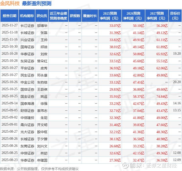 以下是详细的盈利预测信息: