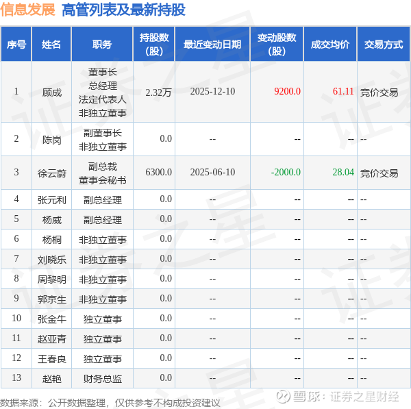 信息发展近半年内的董监高及核心技术人员增减持详情如下: