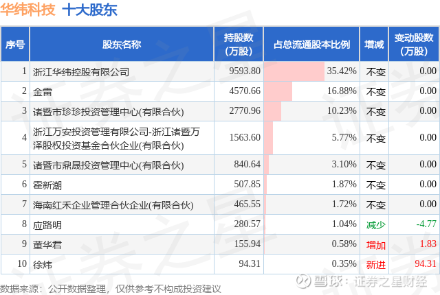 根据华纬科技2025年三季报公布的十大股东详情如下: