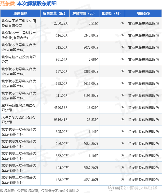 证券之星消息,根据市场公开信息整理,燕东微(688172)于12月16日将有1.93亿股限售股份解禁,为公司首发原股东限售股份,占公司总股本13.54%。(本次数据根据历史公告整理得出,实际情况以上市公司最新公告为准)最近一年内,该股累计解禁454.96万股,占总股本的0.32%。本次解禁后,公司还有6.49亿股限售股份,占总股本45.47%。具体如下图所示: