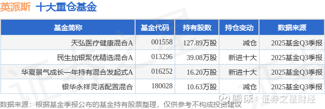 根据2025基金Q3季报公募基金重仓股数据,重仓该股的公募基金共4家,其中持有数量最多的公募基金为天弘基金的天弘医疗健康混合A。天弘医疗健康混合A目前规模为2.63亿元,最新净值1.6775(12月15日),较上一交易日下跌2.2%,近一年下跌6.15%。该公募基金现任基金经理为吕俏。
