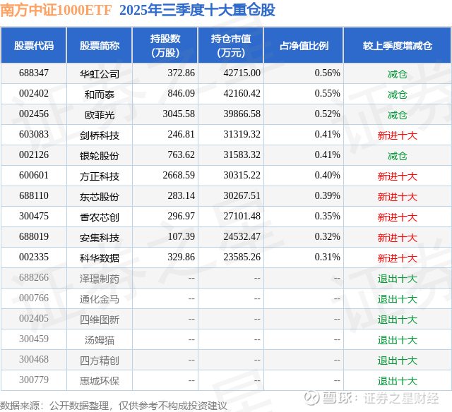 根据2025基金Q3季报公募基金重仓股数据,重仓该股的公募基金共15家,其中持有数量最多的公募基金为南方基金的南方中证1000ETF。南方中证1000ETF目前规模为766.3亿元,最新净值2.963(12月15日),较上一交易日下跌0.88%,近一年上涨16.55%。该公募基金现任基金经理为崔蕾。崔蕾在任的基金产品包括:南方中证申万有色金属ETF发起联接A,管理时间为2019年7月12日至今,期间收益率为172.66%;南方中证申万有色金属ETF,管理时间为2019年7月12日至今,期间收益率为182.89%;南方红利低波50ETF,管理时间为2020年1月17日至今,期间收益率为94.21%。