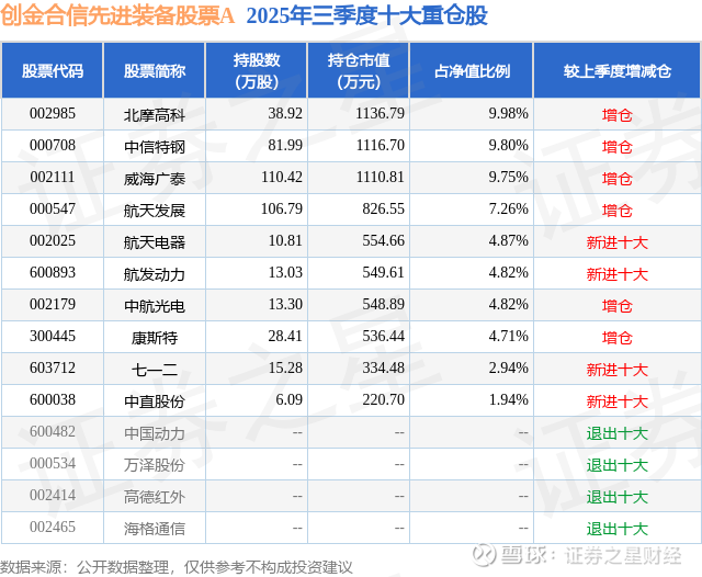 根据2025基金Q3季报公募基金重仓股数据,重仓该股的公募基金共1家,其中持有数量最多的公募基金为创金合信基金的创金合信先进装备股票A。创金合信先进装备股票A目前规模为0.38亿元,最新净值1.5125(12月15日),较上一交易日上涨1.25%,近一年上涨32.2%。该公募基金现任基金经理为李晗。