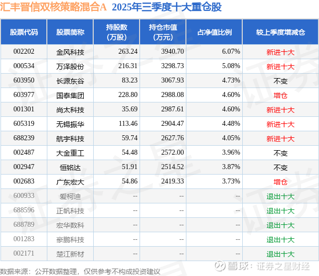 根据2025基金Q3季报公募基金重仓股数据,重仓该股的公募基金共1家,其中持有数量最多的公募基金为汇丰晋信基金的汇丰晋信双核策略混合A。汇丰晋信双核策略混合A目前规模为3.85亿元,最新净值1.844(12月15日),较上一交易日上涨0.23%,近一年上涨41.78%。该公募基金现任基金经理为韦钰。