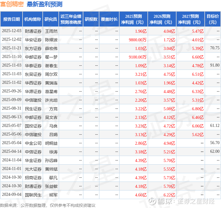以下是详细的盈利预测信息: