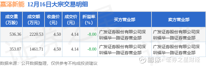 证券之星消息,12月16日嘉泽新能发生大宗交易,交易数据如下: