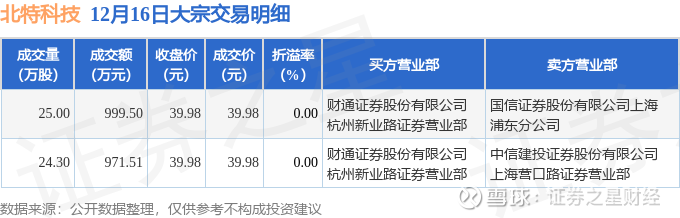 证券之星消息,12月16日北特科技发生大宗交易,交易数据如下: