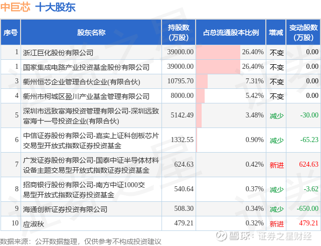 根据中巨芯2025年三季报公布的十大股东详情如下: