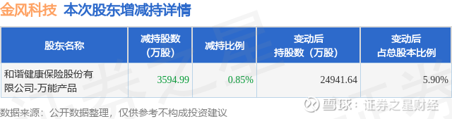证券之星消息,12月16日金风科技发布公告《金风科技:关于持股5%以上股东权益变动触及1%整数倍的公告》,其股东和谐健康保险股份有限公司-万能产品于2025年12月1日至2025年12月15日间合计减持3594.99万股,占公司目前总股本的0.8509%,变动期间该股股价上涨13.56%,截止12月15日收盘报17.5元。