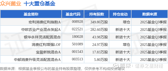 根据2025基金Q3季报公募基金重仓股数据,重仓该股的公募基金共6家,其中持有数量最多的公募基金为宏利基金的宏利消费红利指数A。宏利消费红利指数A目前规模为6.83亿元,最新净值1.5968(12月16日),较上一交易日下跌0.38%,近一年下跌0.3%。该公募基金现任基金经理为李婷婷。李婷婷在任的基金产品包括:宏利500指