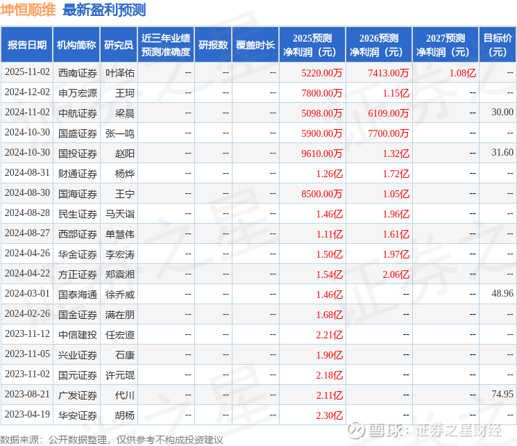 以下是详细的盈利预测信息: