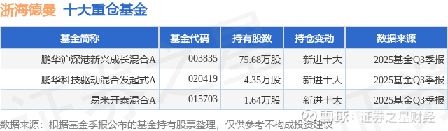 重仓浙海德曼的公募基金请见下表: