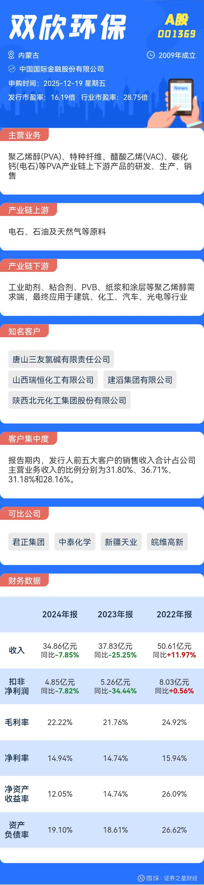 公司业绩方面,2022年至2024年,双欣环保分别实现营业收入50.61亿元、37.83亿元、34.86亿元,分别实现净利润8.08亿元、5.59亿元、5.21亿元。公司预计2025年实现营收37.18亿元,同比增长6.66%;净利润5.25亿元,同比增长0.76%。整体而言,公司业绩自2023年断崖式下滑后仍处于低谷期。