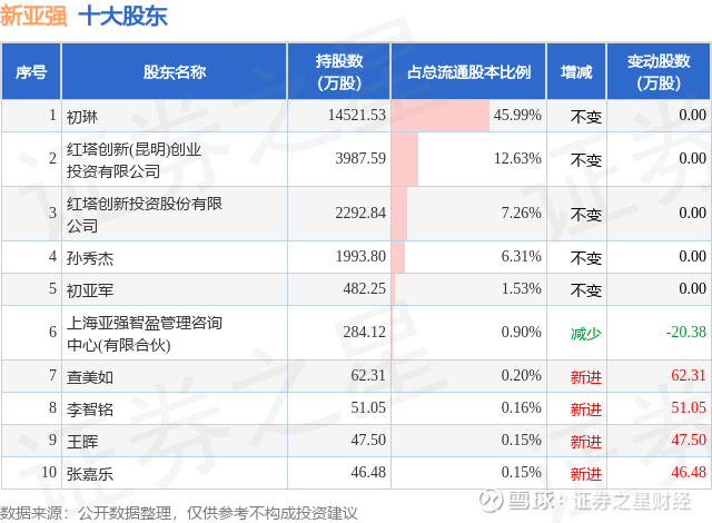 根据新亚强2025年三季报公布的十大股东详情如下: