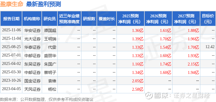 以下是详细的盈利预测信息: