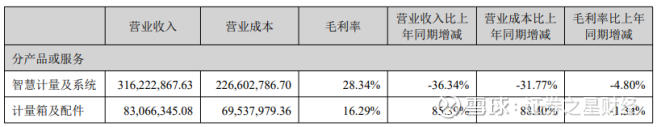 但主营业务毛利率全面下滑成为迦南智能当前的突出问题。今年上半年,智慧计量及系统的毛利率同比跌去4.8个百分点至28.34%。计量箱及配件虽然营收增速较快,但毛利率水平较低,仅16.29%,同比下滑了1.34个百分点,低毛利率业务营收占比的提升进一步拖累了利润。