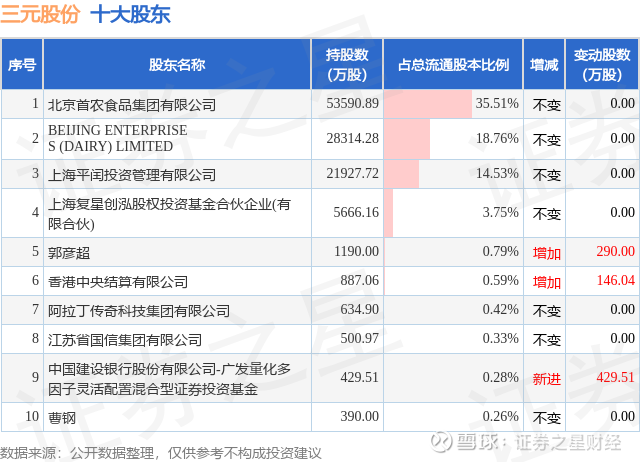 根据三元股份2025年三季报公布的十大股东详情如下: