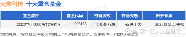 根据2025基金Q3季报公募基金重仓股数据,重仓该股的公募基金共1家,其中持有数量最多的公募基金为建信基金的建信中证1000指数增强A。建信中证1000指数增强A目前规模为7.4亿元,最新净值1.9628(12月19日),较上一交易日上涨0.68%,近一年上涨27.78%。该公募基金现任基金经理为叶乐天 赵云煜。叶乐天在任的基金产品包括:建信央视财经50指数(LOF),管理时间为2013年3月28日至今,期间收益率为237.17%;建信中证500指数增强A,管理时间为2014年1月27日至今,期间收益率为225.09%;建信精工制造指数增强,管理时间为2015年8月26日至今,期间收益率为137.15%;赵云煜在任的基金产品包括:建信中证红利潜力指数A,管理时间为2019年9月11日至今,期间收益率为48.62%;建信MSCI中国A股指数增强A,管理时间为2019年11月13日至今,期间收益率为78.01%;建信民丰回报混合,管理时间为2025年9月25日至今,期间收益率为-0.4%。