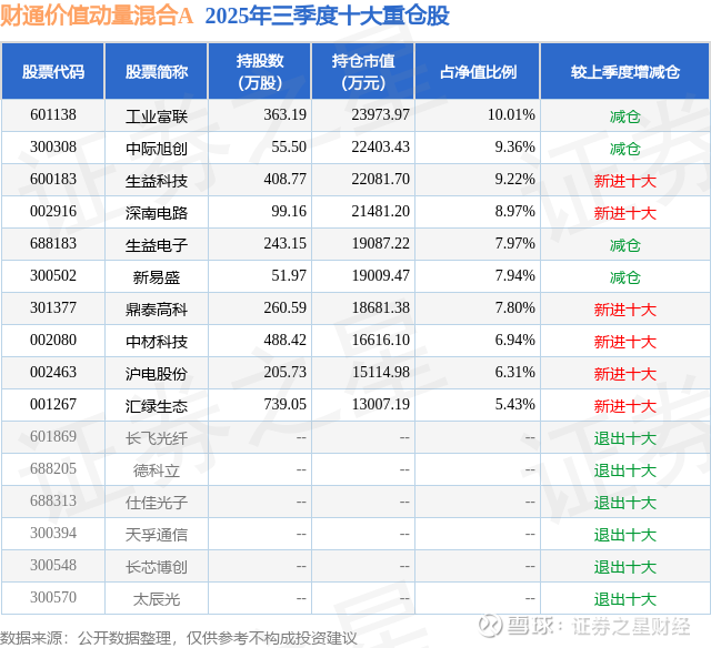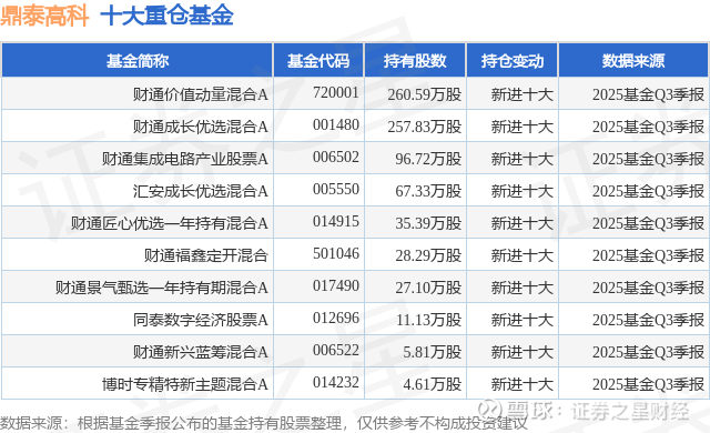 根据2025基金Q3季报公募基金重仓股数据,重仓该股的公募基金共11家,其中持有数量最多的公募基金为财通基金的财通价值动量混合A。财通价值动量混合A目前规模为21.16亿元,最新净值7.826(12月19日),较上一交易日下跌1.51%,近一年上涨72.0%。该公募基金现任基金经理为金梓才。金梓才在任的基金产品包括:财通成长优选混合A,管理时间为2015年6月29日至今,期间收益率为275.5%;财通多策略福鑫定开混合,管理时间为2018年5月21日至今,期间收益率为345.9%;财通集成电路产业股票A,管理时间为2018年11月29日至今,期间收益率为274.66%。