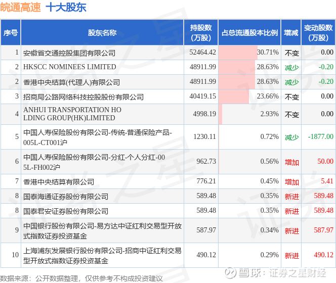 根据皖通高速2025年三季报公布的十大股东详情如下: