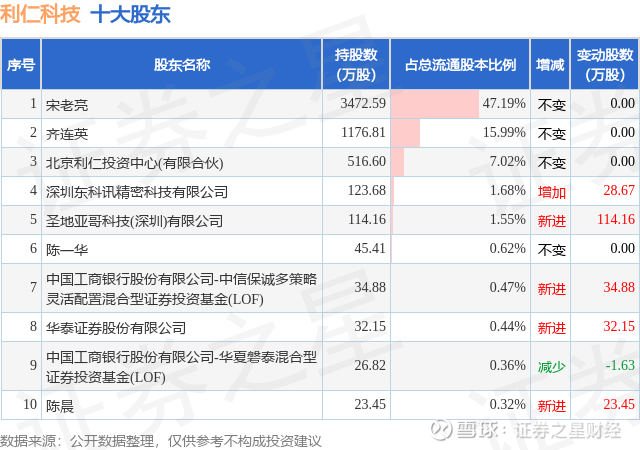 根据利仁科技2025年三季报公布的十大股东详情如下: