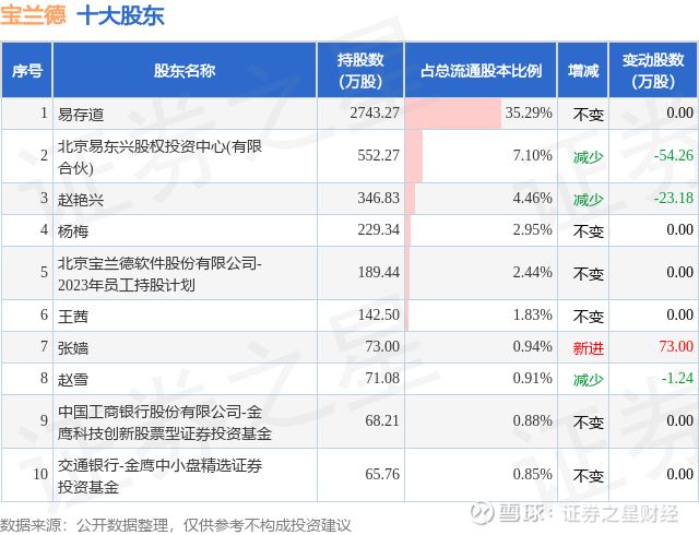 根据宝兰德2025年三季报公布的十大股东详情如下: