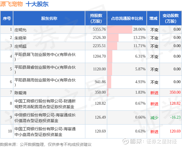 根据源飞宠物2025年三季报公布的十大股东详情如下: