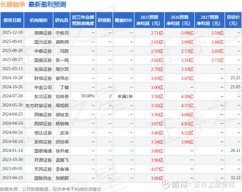 以下是详细的盈利预测信息: